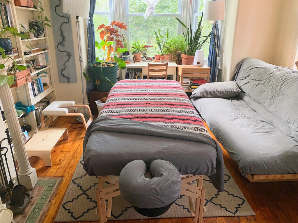 I offer integrative massage and workshops from cozy spaces in West Philly, blending techniques from Swedish, Thai, shiatsu, and more.